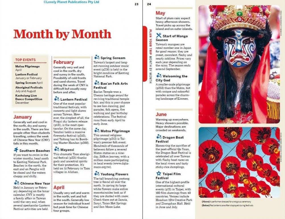 Lonely Planet Taiwan is your passport to all the most relevant and up-to-date advice on what to see, what to skip, and what hidden discoveries await you. Walk into a Chinese painting at marble-walled Taroko Gorge, take a scenic climb up Snow Mountain, or soak in a spa at one of Taiwan's myriad hot springs, all with your trusted travel companion. Get to the heart of Taiwan and begin your journey now! .