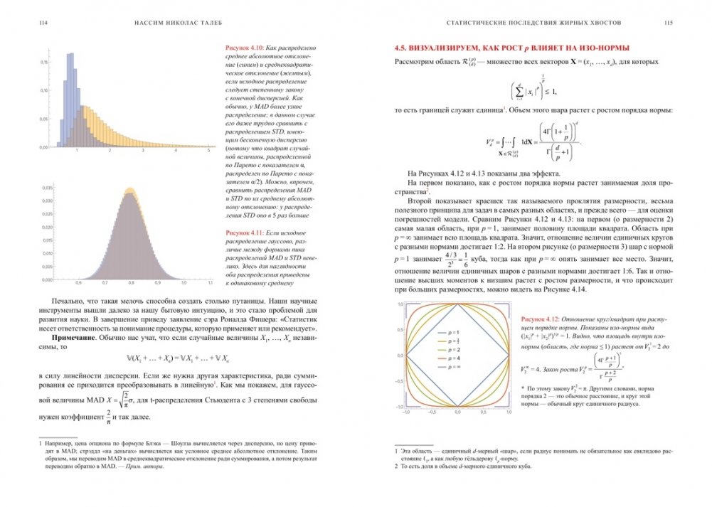 Если вы не дружите с графиками и формулами, то из этой книги почерпнете информацию только про скандалы и разоблачение горе-ученых. Если вы учили математическую статистику, эта книга поможет вам переучиться. Если вы студент или ученый, эта книга — бесценный мастер-класс. Впервые под одной обложкой собраны исследовательские статьи Талеба и его учеников, где в неповторимом талебовском стиле живо и ярко прослеживается ход мысли прикладного математика, сталкивающегося с жизненной задачей, не зная, можно ли ее решить аналитически, с чего начать, за что хвататься, — но настроенного пустить в ход, если понадобится, весь арсенал классической и современной математики и всю мощь компьютеров.