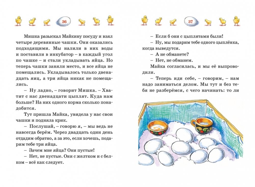 Любознательные мальчишки Мишка и Коля, прочитав книгу о птицеводстве, решили провести научный эксперимент: вывести настоящих цыплят в самодельном инкубаторе! Получится ли у ребят справиться с этим нелёгким делом? Смешная и увлекательная повесть известного детского писателя Николая Николаевича Носова не оставит равнодушным ни одного юного читателя.