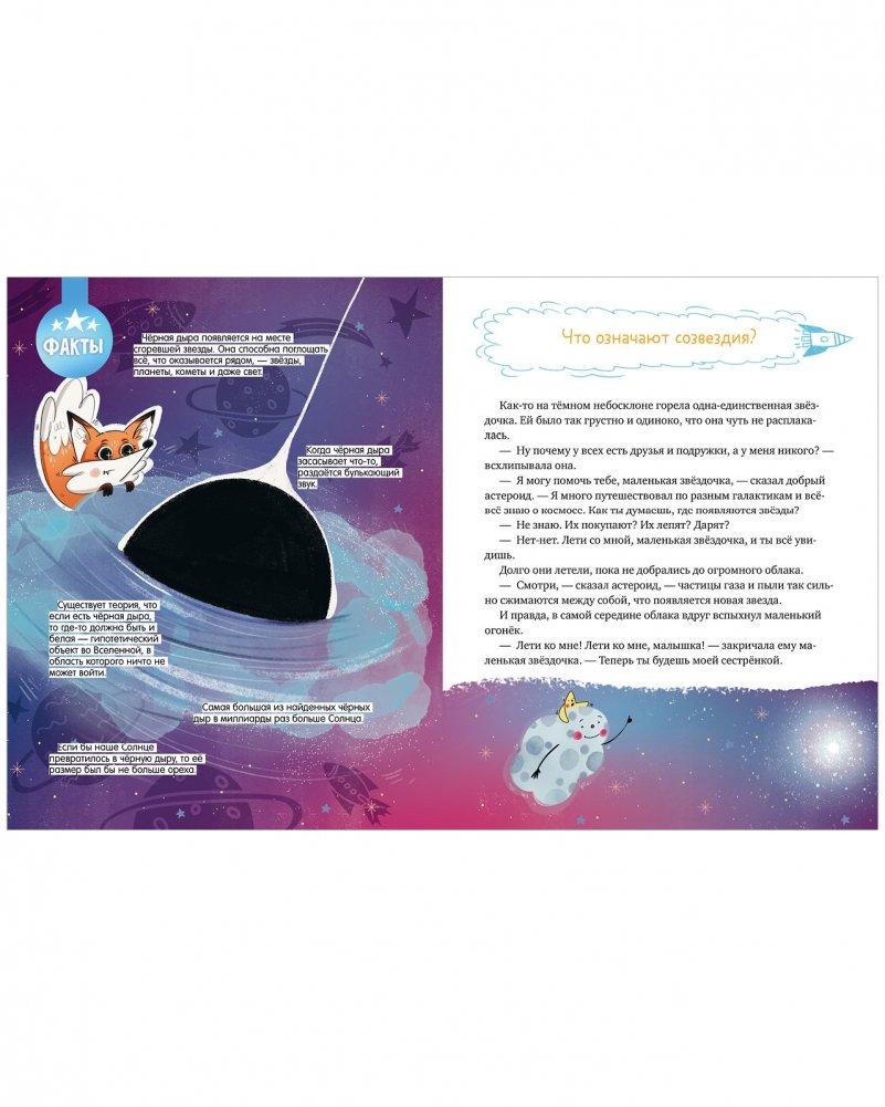 Захватывающее путешествие по галактике вместе с лисенком Почемучкой — 20 историй о тайнах космоса с яркими поясняющими иллюстрациями.