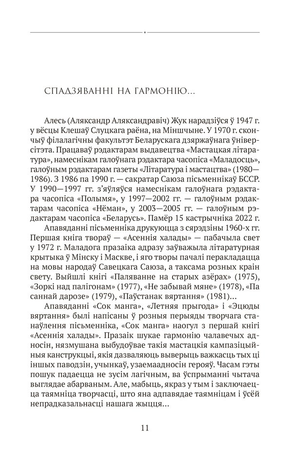 Новая кніга з серыі «Сучасная беларуская літаратура» сабрала прозу пісьменнікаў некалькіх пакаленняў. Невялікія творы прысвечаны невычэрпнай тэме ўзаемаадносін паміж людзьмі і духоўных пошукаў чалавека. Аўтары паказваюць, як па-рознаму можа праяўляцца любоў і як яна ўплывае на лёс людзей. Апавяданні ў прафесійным агучванні можна праслухаць з дапамогай QR-кодаў.