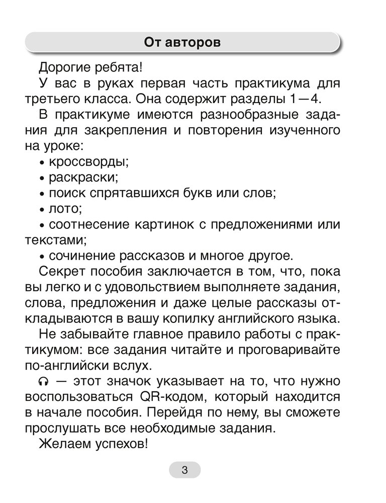 Издание дополняет учебное пособие «Английский язык. 3 класс» авторов Л. М. Лапицкой и др. Представленные задания способствуют развитию устойчивых навыков чтения и письма, а также активации грамматических структур в устной и письменной речи.