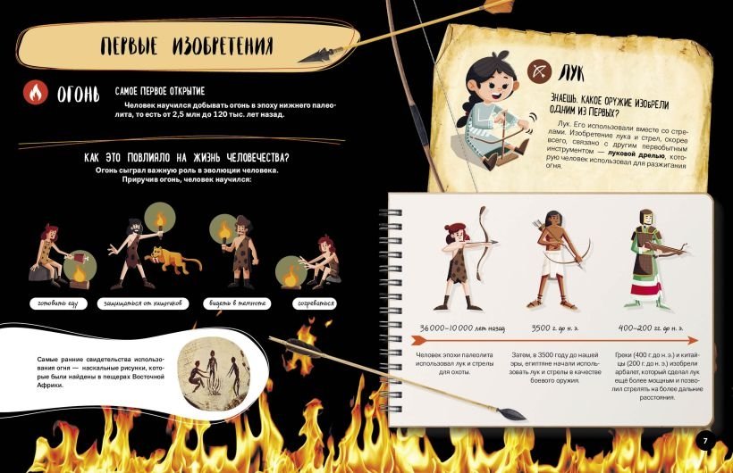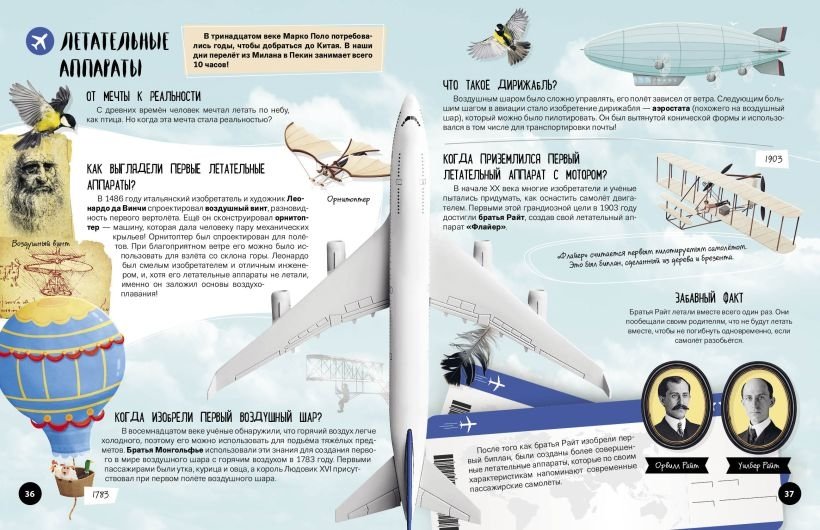 Интересная и познавательная энциклопедия для малыша, из которой он получит первые знания о самых важных изобретениях. Ребёнок узнает много нового оразличных предметах и инструментых познания мира – от бумаги до мобильного телефона. Ещё его ждут ответы на самые необычные вопросы: кто сделал самый прочный клей, где появились первые железные дороги, существуют ли мыслящие машины. А в подарок малыш получит большой постер, который поможет ему ещё лучше познакомиться с историей главных открытий.