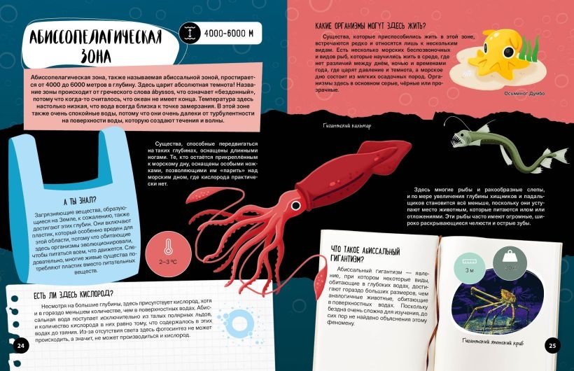Интересная и познавательная энциклопедия для малыша, из которой он получит первые знания о морях, океанах и их обитателях. Ребёнок узнает много нового о разных зонах Мирового океана и их особенностях. Ещё его ждут ответы на самые необычные вопросы: кто может жить на огромной глубине, как образуются волны, какая морская птица самая большая, почему важно исследовать подводный мир. А в подарок малыш получит большой постер, который поможет ему ещё лучше познакомиться с океанами и морями.