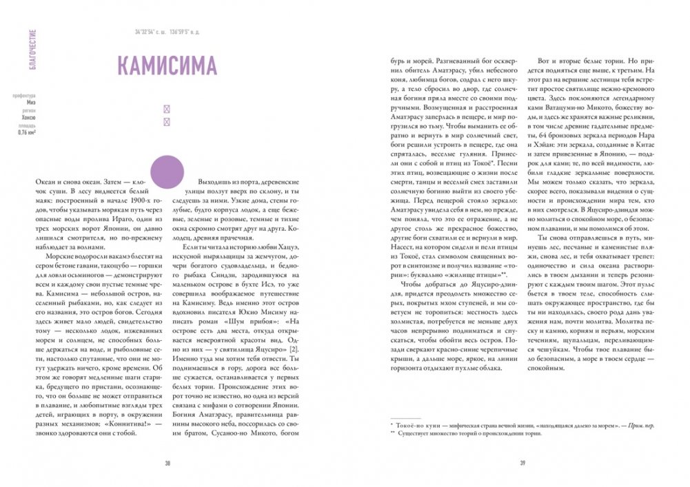 Согласно мифу, Япония родилась по воле богов из копья, погруженного в океан: стекшие с него комочки соли образовали первый остров. Бесчисленные уголки этого загадочного архипелага до сих пор хранят старинные легенды и невероятные истории. Глядя на красочные иллюстрации, вы совершите путешествие от заснеженного Хоккайдо до жаркой Окинавы через древние святилища, волшебные леса и заброшенные скалы. С этой книгой вы сможете лучше понять не только эту необыкновенную страну, но и самих себя.