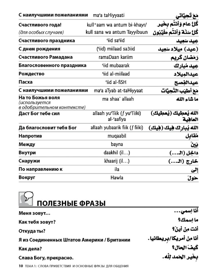 Если вы хотите быстро овладеть разговорным арабским языком и общаться без словаря — эта книга для вас. Пособие познакомит вас с важнейшей современной лексикой, которая нужна для повседневной жизни, чтения и прослушивания новостей, для дружеского общения во всем арабском мире. Главной особенностью данного пособия является то, что оно ориентировано на развитие речи и применение знаний на практике. 16 тем посвящены таким главным сферам жизни как семья, друзья, образование, работа, хобби, быт, мода, здоровье, чувства, СМИ, погода и т. п. Каждая тема содержит самую актуальную лексику и основную грамматику, которые увеличивают объем и разнообразие тем для обсуждения. Пособие можно использовать как для индивидуальной работы, так и для работы в группе, для самостоятельного изучения и занятий с преподавателем. В качестве дополнительных материалов в издание включены мнемокарточки и раздел «Подготовка к экзаменам», содержащий все необходимые тесты. В дополнение к книге выпущено аудиоприложение, чтобы легко научиться воспринимать арабскую речь на слух.