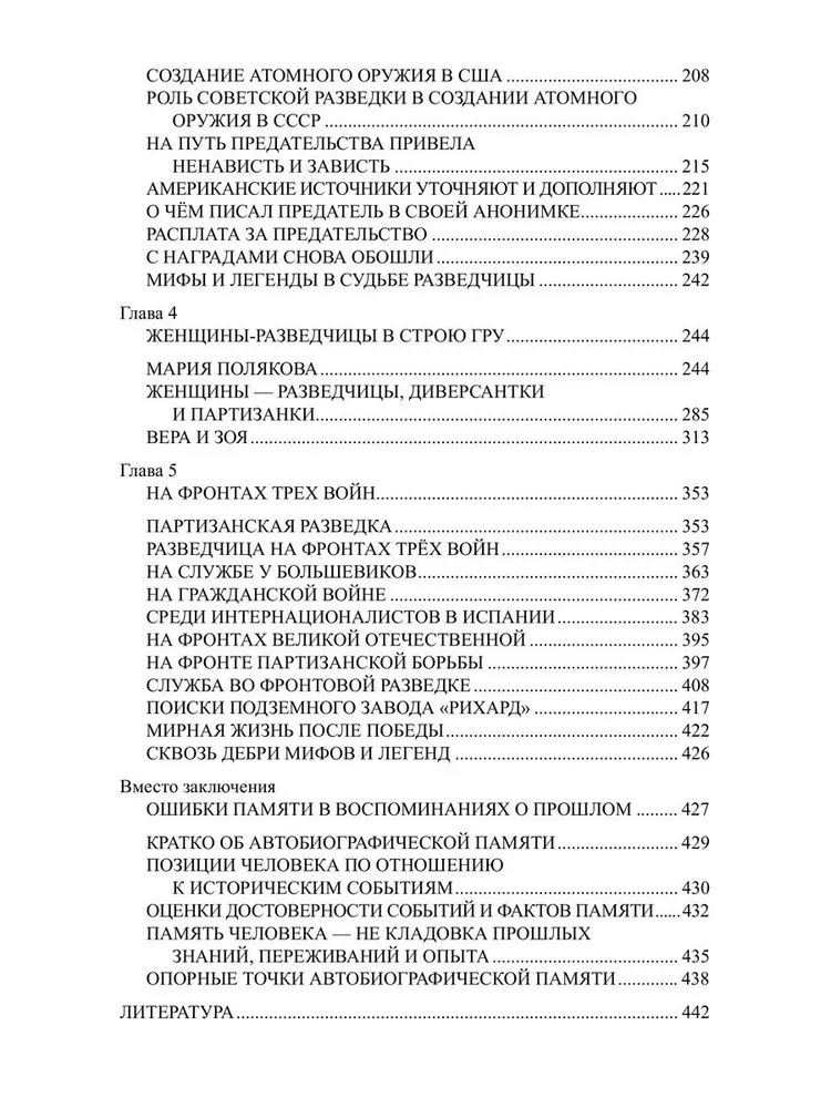Читатель узнает об информаторах и «личной разведке» Сталина, о знаменитой киноактрисе Германии Ольге Чеховой. Автор подробно рассказывает о легендарной разведчице Е.Ю. Зарубиной, работавшей по Атомному проекту вместе с мужем-резидентом. Немало страниц автор посвятил разведчицам-нелегалам — М.И. Поляковой, возглавившей резидентуру «Центр» на территории Москвы в тяжелые дни середины октября 1941 года, и М.А. Фортус, отличившейся в 1945 году в поисках подземного немецкого завода «Рихард» в Чехословакии. Отдельная глава посвящена трагической судьбе двух девушек-героинь войсковой разведки — Зои Космодемьянской и Веры Волошиной, погибших от рук фашистов в 1941 году.