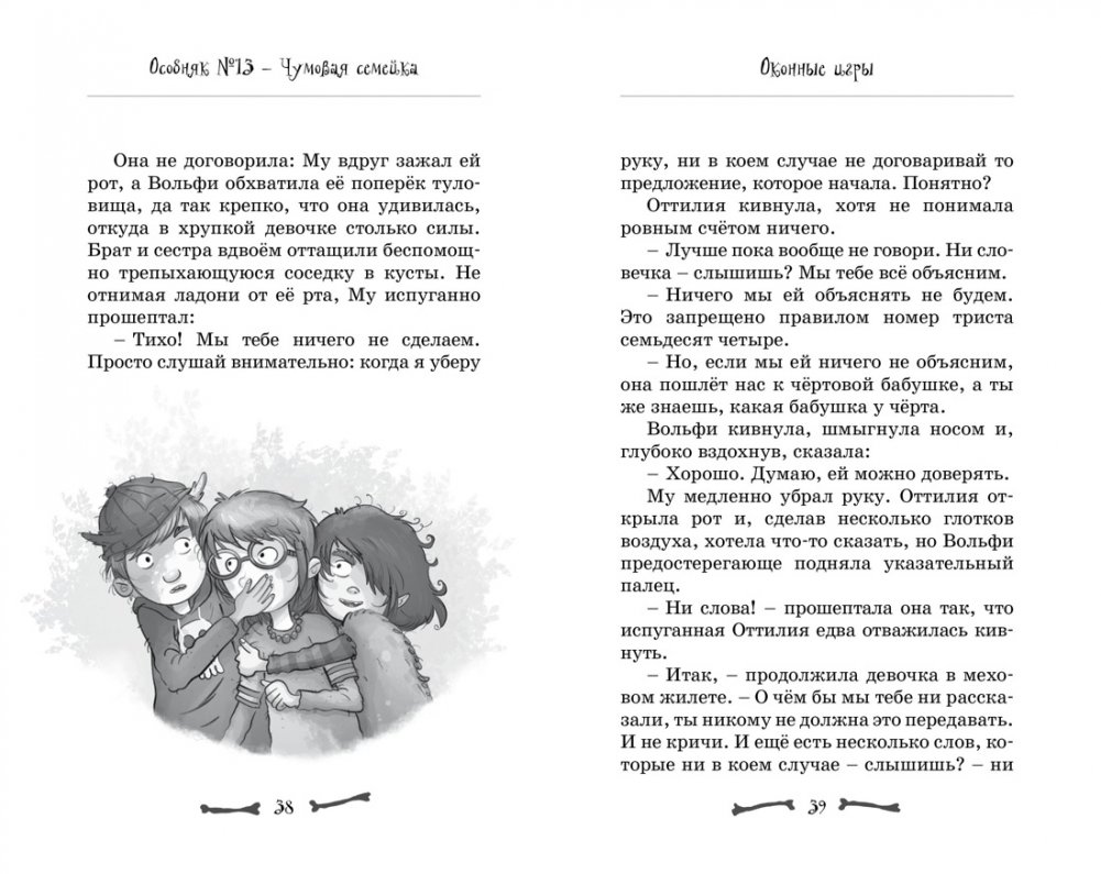 В ночь на пятницу тринадцатого Оттилия Шмидт не спала. По этой причине она стала свидетельницей подозрительного полуночного происшествия. В заброшенный особняк №13 заехали новые жильцы… Так начинается эта умопомрачительная история, в которой шесть эффектно-волшебных существ отчаянно пытаются влиться в мир обычно-привычных людей. И приходится им учиться маскироваться, гримироваться, и лишний раз живых не пугаться...