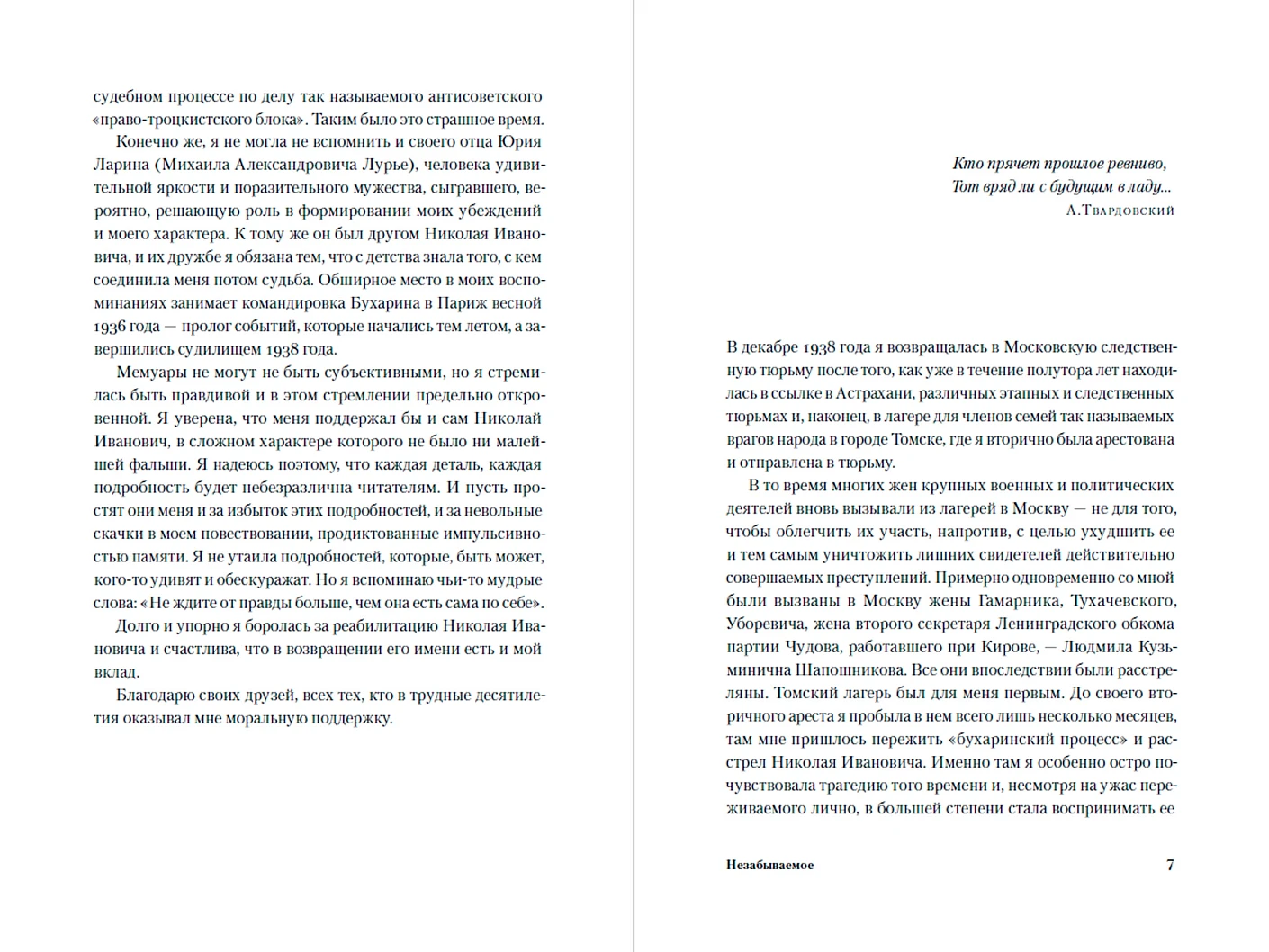 В 1937 г. видного политического деятеля Николая Бухарина арестовывают, а его супругу Анну Ларину-Бухарину объявляют ЧСИР (членом семьи изменника Родины) и отправляют в ссылку. О смерти мужа Анна узнает в Томском лагере, куда попадает по сфабрикованному обвинению. В заключении она провела 19 лет, а после освобождения написала пронзительные мемуары, в которых личная драма переплетается с трагедией эпохи Большого террора. Вспоминая годы в тюрьме и лагере, она описывает абсурд и жестокость, ставшие частью жизни сотен тысяч невинных. В книге запечатлены ее знакомство с Бухариным, предыстория «бухаринского процесса», тяжелые лагерные будни и судьбы других репрессированных. Перед читателем также предстают яркие портреты Сталина, Троцкого, Рыкова, Радека, Орджоникидзе, Ежова, Берии и других партийных деятелей. Эти мемуары не только взгляд изнутри на трагедию эпохи, но и история борьбы за правду и реабилитацию имени Бухарина, которой Анна посвятила всю жизнь.