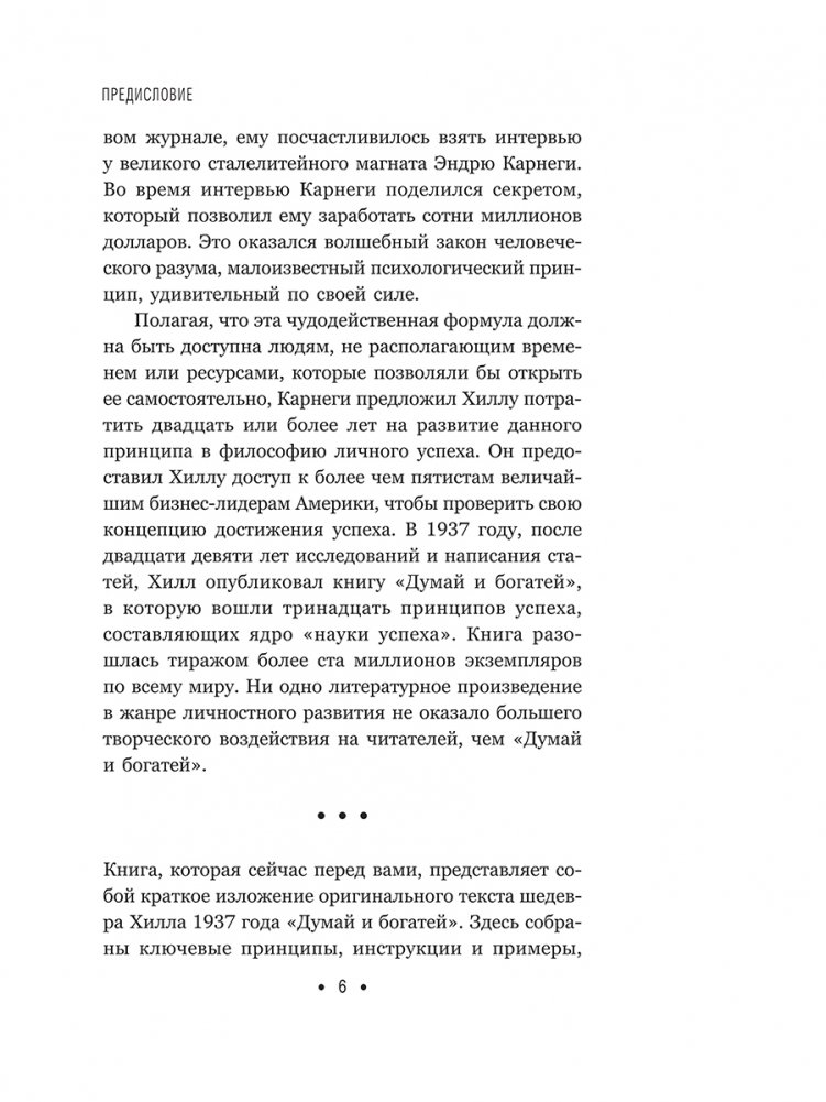 Книга представляет собой краткое изложение оригинального текста шедевра Наполеона Хилла 1937 года. В ней собраны ключевые принципы, рекомендации и примеры, чтобы современный профессионал тоже мог извлечь пользу из актуальной во все времена мудрости Хилла, открыв для себя путь к стремительному личностному росту и придав импульс воплощению своей мечты.