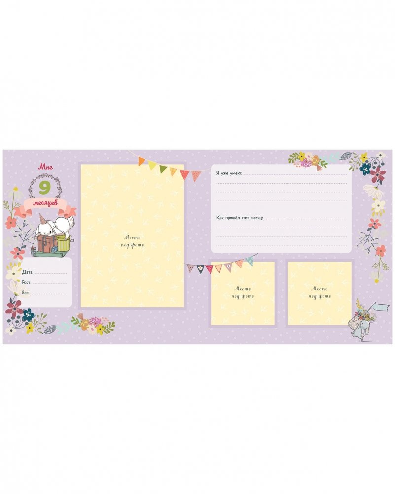 Альбом в красивом нежном оформлении с милыми иллюстрациями станет книгой самых любимых воспоминаний и моментов, наполненных незабываемыми эмоциями. И прекрасным подарком беременным, родителям новорожденных, на рождение и на первый день рождения девочки.