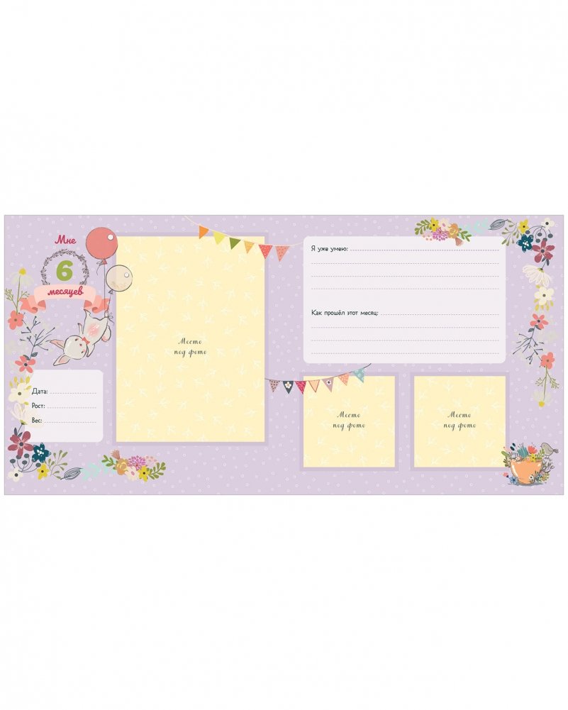 Записывать важную информацию о первых месяцах роста и развития дочки, заполнять страницы о первых шагах, первых словах и успехах малышки, вклеивать фото и каждый месяц следить за развитием крохи — все это вы сможете с фотоальбомом «Мой первый альбом (для девочки)». Закрашивайте на рисунке зубки, которые будут появляться у малышки, записывайте, что она говорит, пишите письма в будущее.