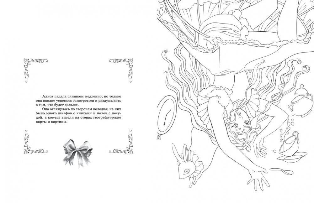 Раскраска — отличный подарок для фаната «Алисы в Стране чудес» Льюиса Кэрролла всех возрастов, а также для любителей создавать прекрасные картинки, не ограничивая свою фантазию.