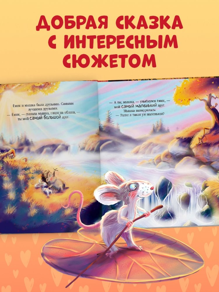Новая книжка про ежика и мышку — в удобной мягкой обложке. Трогательная история о том, что маленький рост не помеха большой дружбе.