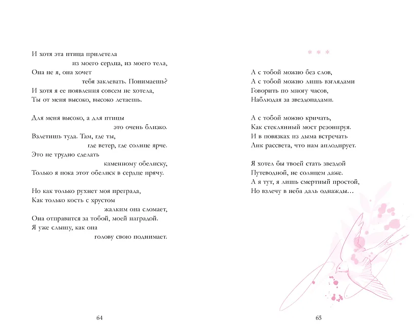 В первой части сборника ждут пронзительные стихи о любви, повседневных чудесах и тихих откровениях. Яркая, чувственная лирика Джейн полна тонких деталей, наблюдений и выверенных образов. Вторая часть — поэтическое отражение миров ее героев: от мятежной Тани Ведьминой до персонажей дилогии «Притворись моей парой», от нежной колыбельной «Нежеланной невесты» до резких слов «Поклонника» и даже строк по мотивам неоконченной книги «На подмостках волшебства».