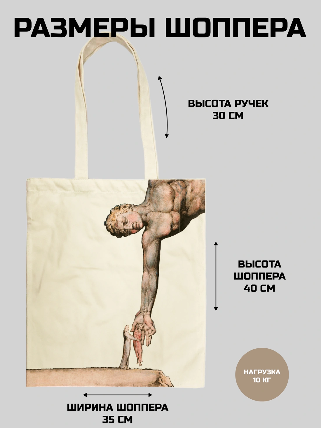 Изготовлен из плотной натуральной хлопковой саржи и отличается износостойкостью. Удобная длина ручек. Цветная печать методом шелкографии. Выдержит книжки весом до 10 кг. В шоппер поместится ноутбук с диагональю до 17 дюймов, папка формата А4.
