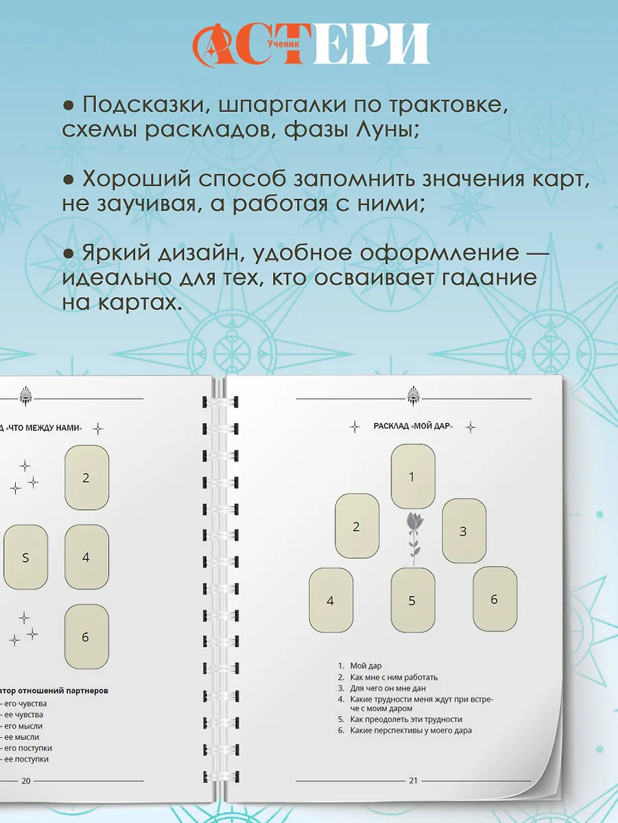 Блокнот для раскладов — это идеальный помощник для работы с картами Таро, который станет полезным дополнением к вашей первой колоде и книге. Делая записи в блокноте, вы научитесь видеть закономерности и знаки карт.