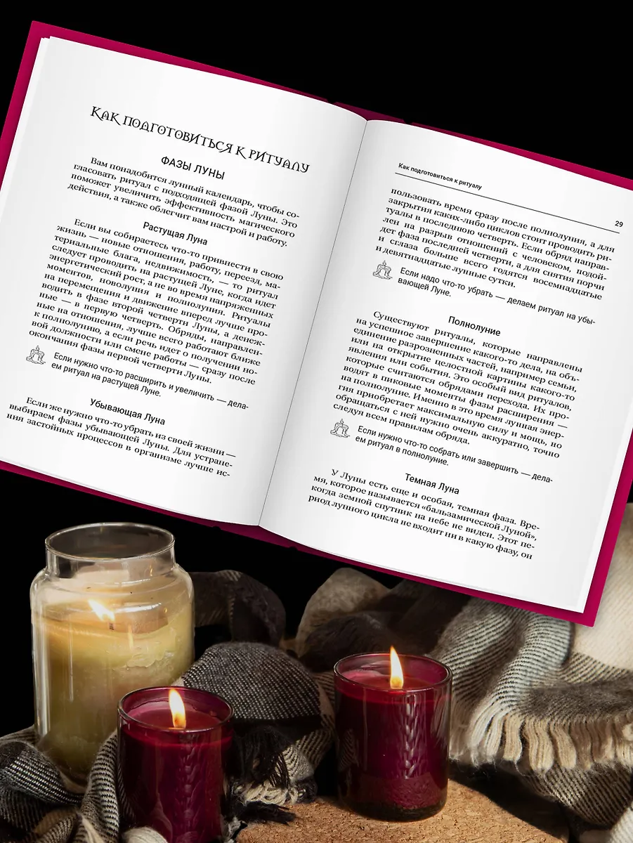 Эта книга написана не для того, чтобы рассказать, какие бывают свечи или как их создавать. Подобную информацию вы легко можете найти в открытом доступе. Гораздо ценнее практическая часть: вы узнаете, как выбрать и подготовить свечи к практике, познакомитесь с готовыми ритуалами для самых разных жизненных ситуаций и научитесь создавать собственные.