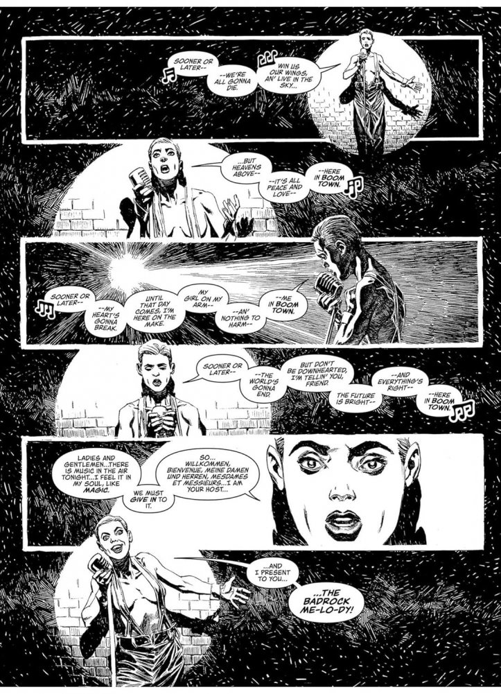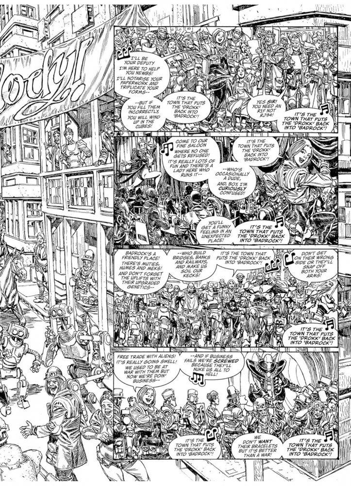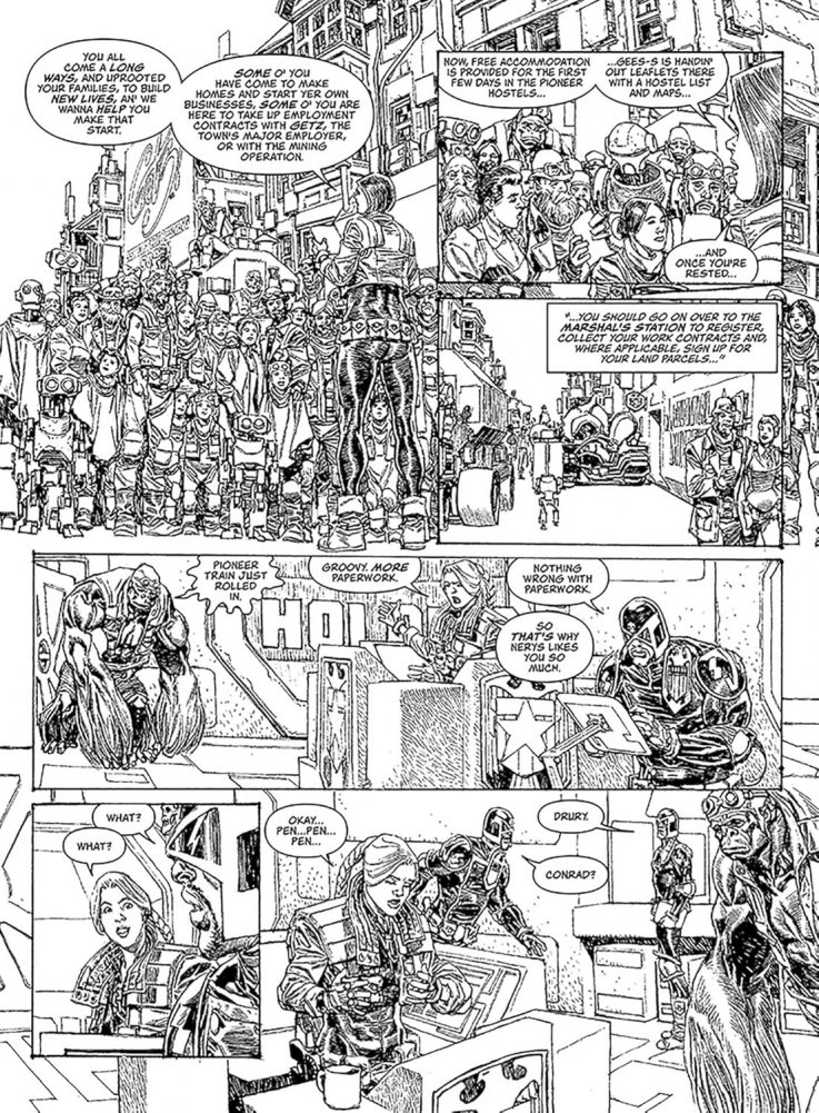 Having narrowly avoided being wiped from the face of the planet by Munce, Inc., Badrock is now a thriving boom town, predicated on an uneasy peace between the Zhind, the settlers and the Mega-City One Justice Department. Designated a Free Town, the future’s there for taking, and folks from all over the planet 43 Rega are flocking to Badrock to begin anew, all under the watchful, disapproving eye of the SJS. Many are hardworking, honest folk – but some are parasites, drawn to Badrock to find new ways of making a killing. And when a caravan of settlers is brutally slaughtered, it’ll take all that Colonial Marshal Metta Lawson has to stop an outright war.