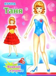 Вырежи куклу с подставкой с первой и последней страницы обложки и склей её. Вырежи наряды и играй с куклой.