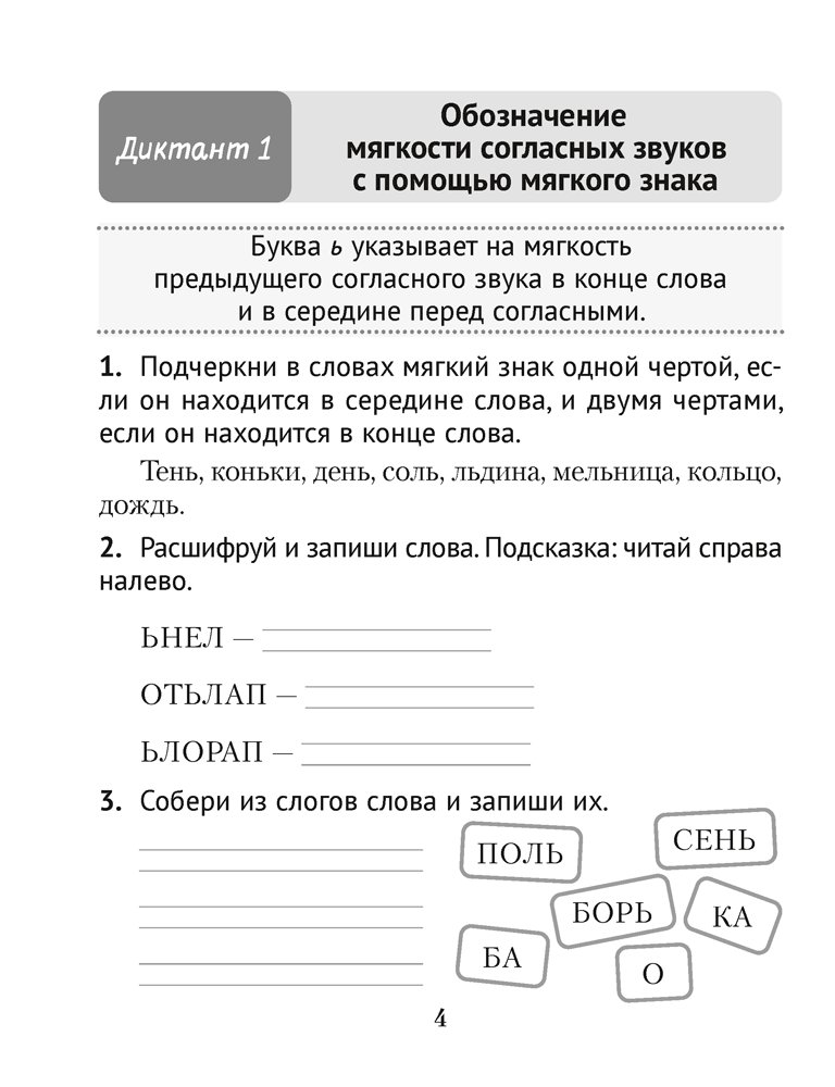 Пособие представляет собой тетрадь-тренажёр по подготовке учащихся 2 класса к письму под диктовку в соответствии с темами учебной программы. Каждый блок включает правило и задания для его отработки на практике, а также QR-код с аудиодиктантом, начитанным учителем начальных классов.