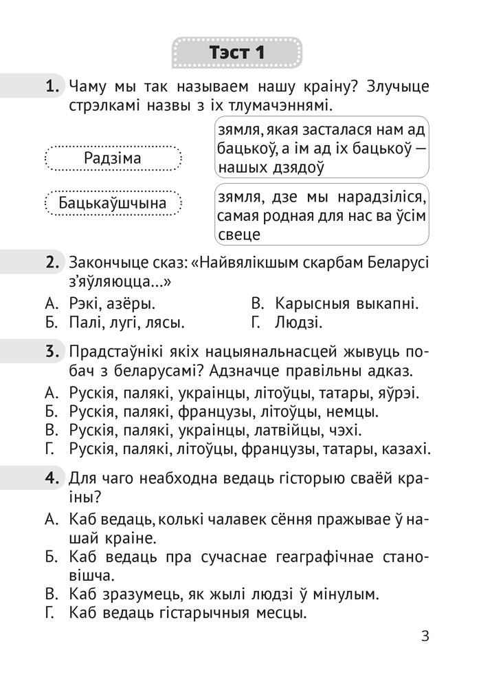 Чалавек і свет. Мая Радзіма — Беларусь. 4 клас. Тэсты