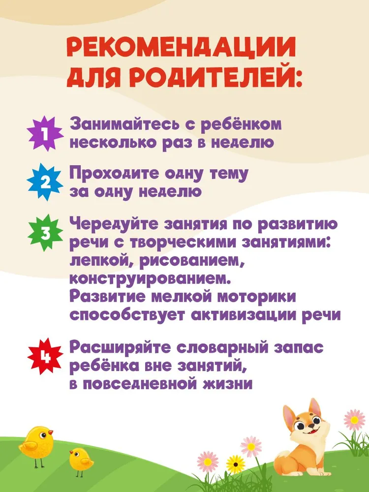 «Альбом по развитию речи» предназначен для детей дошкольного возраста. Яркие красочные иллюстрации понятны малышам. Оптимальное количество страниц не отпугнёт ребёнка от занятий, а вызовет интрес и желание к обучению. Работу с данным пособием можно организовывать по принципу: одна неделя — одна тема. В лёгкой игровой форме ребёнок изучит 20 тем и при этом разовьёт образное и логическое мышление, внимание и кругозор, связную речь и словарный запас, сформирует лексико-грамматические представления. Но это не значит, что после прохождения всех тем пособие больше не понадобится. Его можно использовать каждый год, повторяя и усложняя задания, систематизируя полученные ранее знания. Также эта книга поможет родителям и педагогам при подготовке детей к школе.