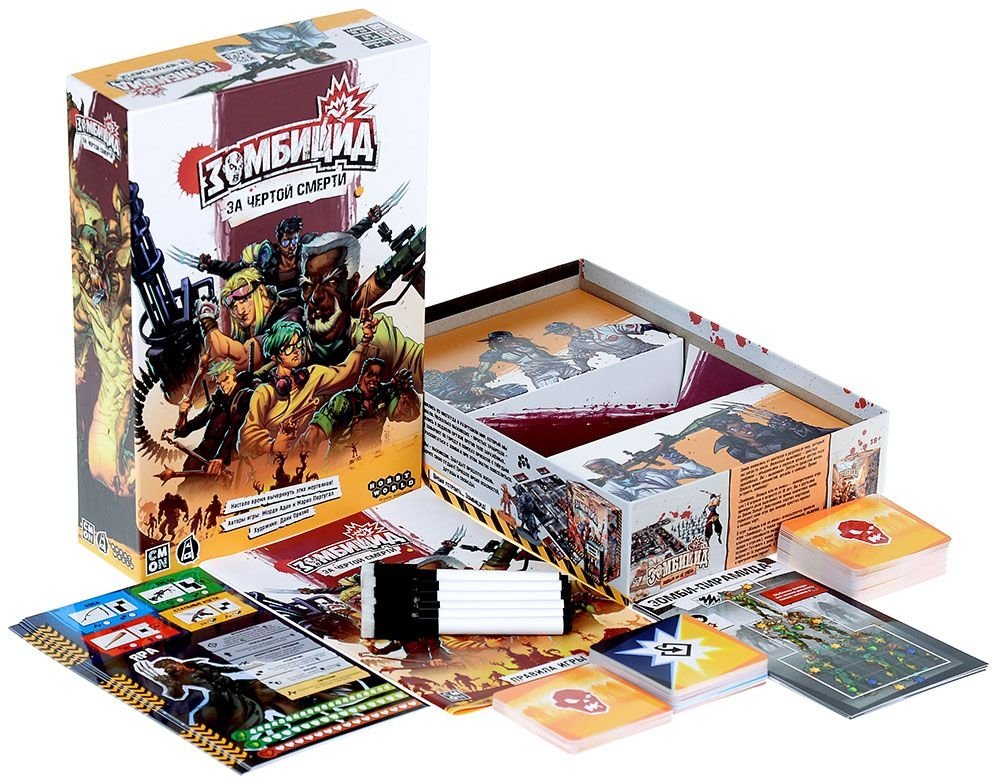 Это самостоятельная кооперативная настольная игра с механикой закрашивания в мире "Зомбицида". Вам предстоит обороняться от живых мертвецов, улучшать своё оружие, рисуя на планшетах, и при этом пытаться достичь финальной цели – убить жирного босса, закрасив его целиком!