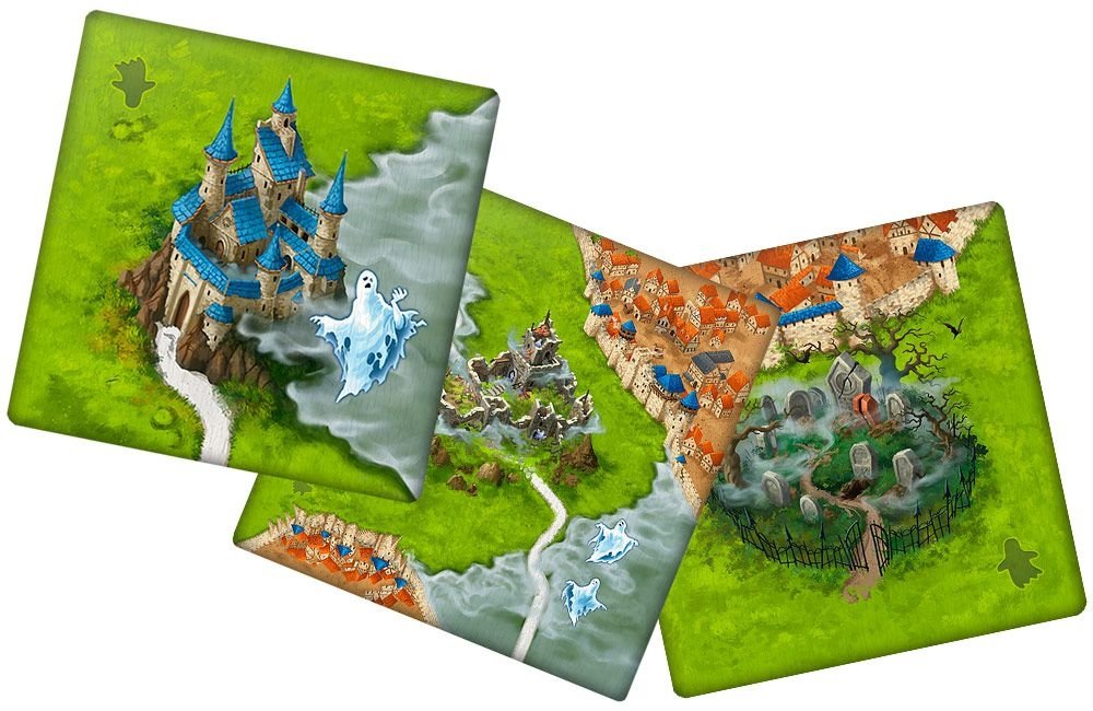 Если у вас есть базовая игра "Каркассон", можете совмещать с ней "Каркассон: Туманы и призраки", используя как дополнение, состоящее из трёх модулей. Вы можете вводить его в игру полностью или частично.