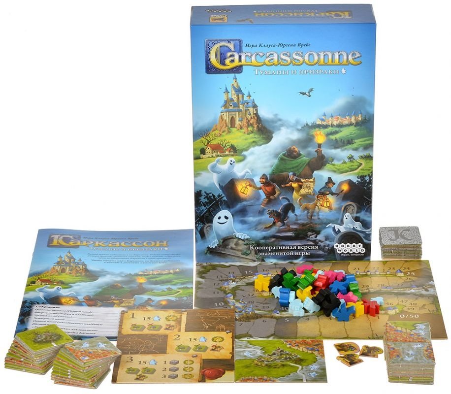 "Каркассон: Туманы и призраки" – кооперативная версия игры "Каркассон". На этот раз вы будете вместе расширять свои владения, исследовать загадочные дворцы и бороться с потусторонними силами. Вас ждёт кампания из 6 походов на призраков: каждый привносит в игру новые элементы и делает её насыщеннее и сложнее. Защитите Каркассон от непрошенных гостей, пока не стало слишком поздно!