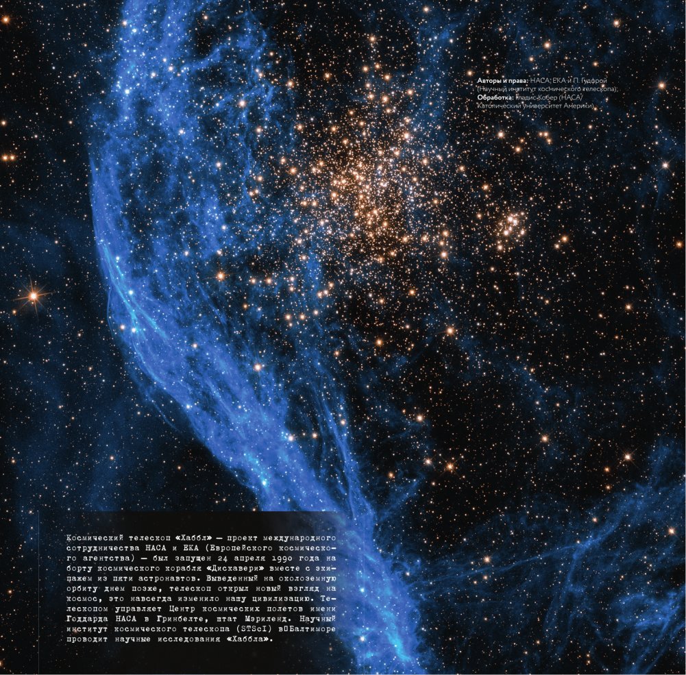В этом календаре представлены подлинные фотографии космоса, сделанные легендарным космическим телескопом "Хаббл". Его открытия стали настоящим прорывом в астрономии — не только для ученых, но и для широкой публики. В отличие от своих предшественников, "Хаббл" сделал космос ближе, понятнее и увлекательнее для людей всех возрастов. Его яркие и детализированные снимки стали основой для важнейших научных открытий, касающихся структуры и развития Вселенной, агалктик, туманностей, звезд, экзопланет и ближайших объектов в нашей Солничной системе. Благодаря наблюдениям "Хаббла" мы по-новому взглянули на бескрайний космос и на собственное место в нем.