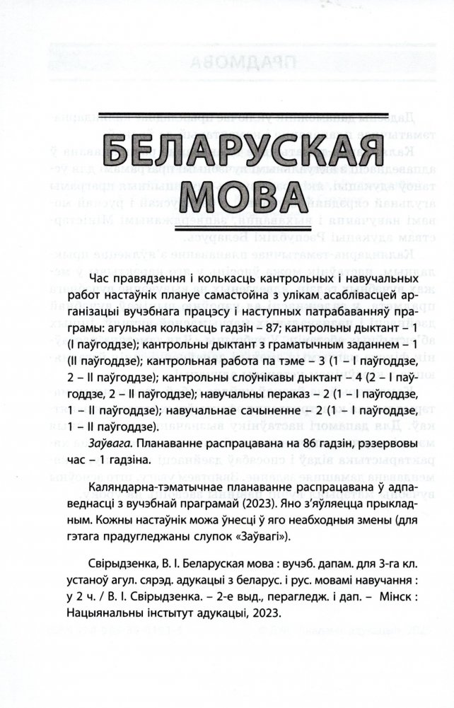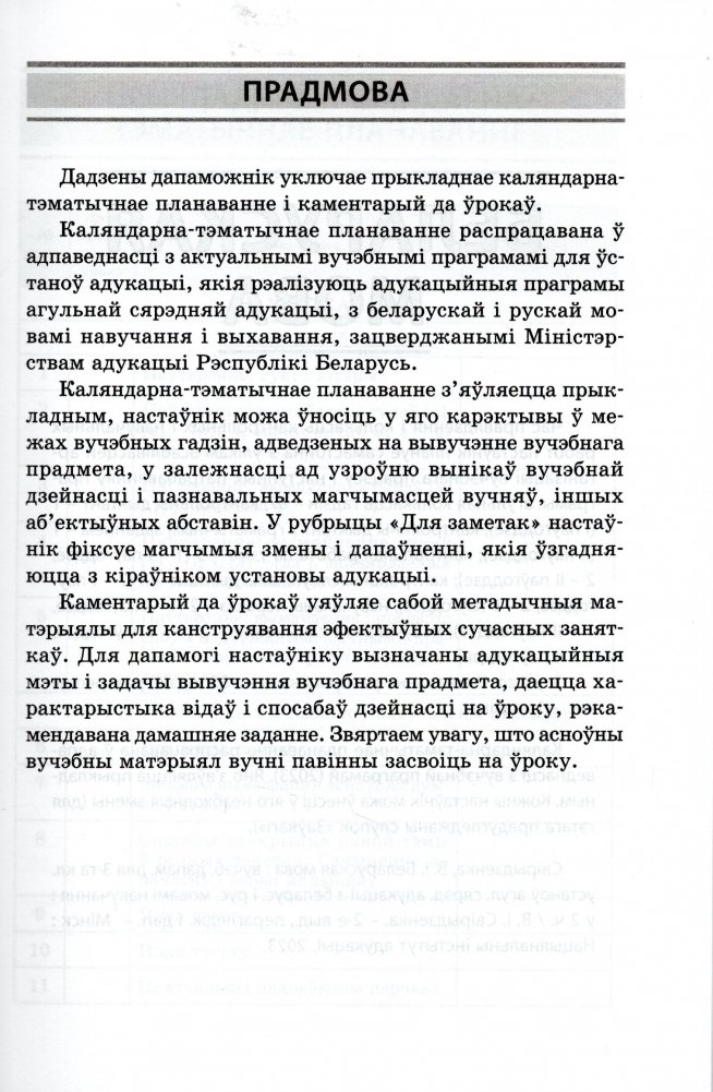 Дадзены дапаможнік уключае прыкладнае каляндарна-тэматычнае планаванне і каметарый да ўрокаў.