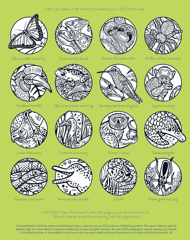 Immerse yourself in a world of lush, dripping foliage and rarely-glimpsed wildlife. Watch out for lemurs and anacondas, ocelots and hummingbirds. If you look really closely you might even spot some tiny sloth moths fluttering around their host sloth, or the 'blue jeans' colourway of the poison-dart frog - which gives the frog the appearance it has denim legwear! Use the brush provided to sweep water over the designs and vibrant colours magically appear. A mess-free way to keep children busy, perfect for travel. Simply tuck the waterproof back flap under each page as it's painted, to stop water from seeping through to the rest of the book.
