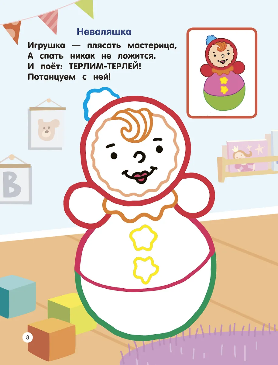 "Игрушки. Раскраски по образцу" — лучшая книга для раннего развития ребёнка. Широкий цветной контур подскажет юному художнику, каким цветом можно раскрасить картинку. Яркие картинки-образцы научат подбирать цвета, а крупные детали очень удобно раскрашивать. Рисование по образцу сделает занятие не только весёлым, но и полезным: дети будут наслаждаться творчеством, развивать мелкую моторику, образное мышление и художественный вкус. А весёлые стихи — это идеально для запуска речи малыша. Для дошкольного возраста.