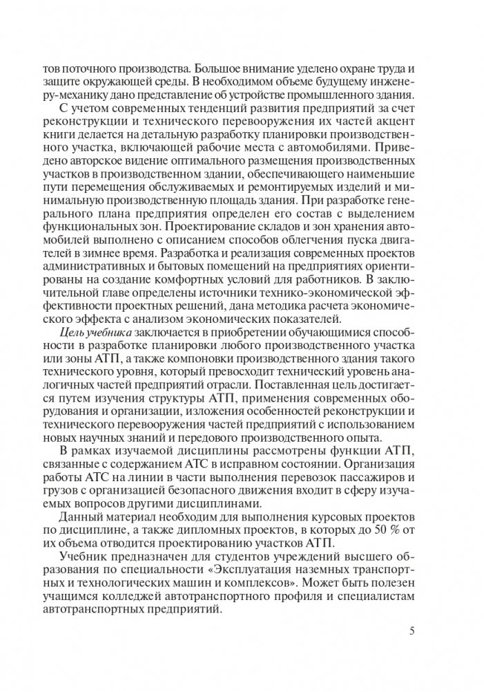 Рассмотрена система предприятий автомобильного транспорта: состав, содержание и последовательность проектирования промышленного здания, административных и бытовых помещений. Изложены методы расчета основных технологических параметров и экономических показателей при проектировании предприятий с учетом ограничений, связанных с охраной труда и защитой окружающей среды. Даны примеры решения важнейших производственных задач, возникающих в проектной практике. Определены порядок и особенности разработки планировки производственного участка, компоновки производственного корпуса и составления генерального плана предприятия.