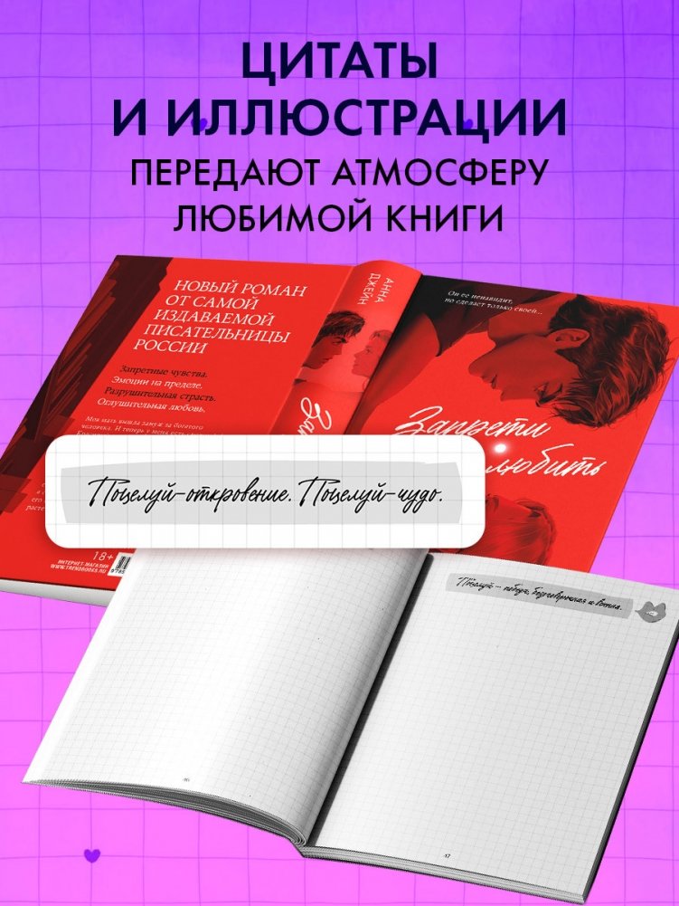 Блокнот с цитатами из романов Анны Джейн. Обложка "Запрети любить"