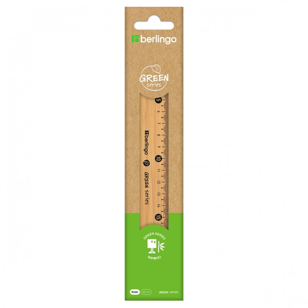 Линейка Berlingo Green Series выполнена из бамбука. Длина линейки − 20 см, ширина − 25 мм. Качественная градуировка нанесена с использованием УФ-чернил для наилучшей устойчивости. Упаковка − крафтовый пакет с европодвесом.