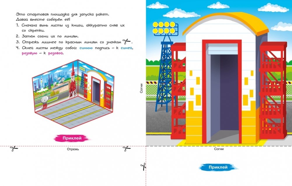Перед вами уникальная книга для создания бумажных ракет и космодрома.