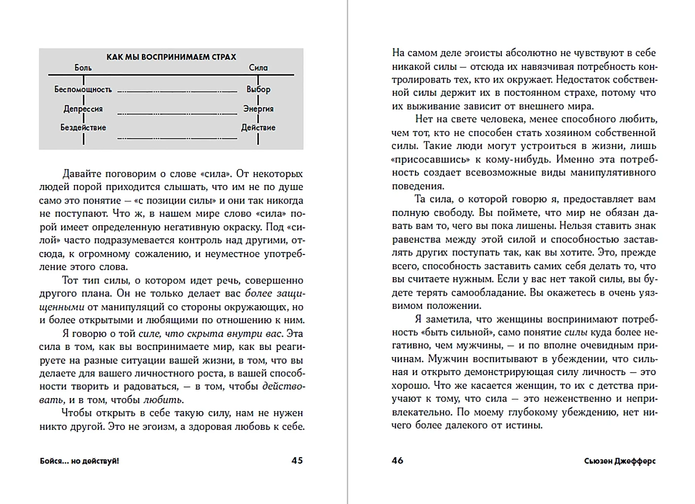 - Этот бестселлер Сьюзен Джефферс выдержал 20 изданий только на английском языке и разошелся тиражом более 2 млн экземпляров. Возможно, это самая авторитетная книга о преодолении страха.