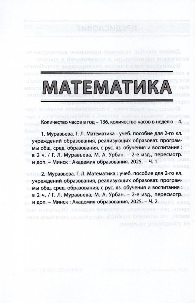 Начальная школа. Математика. Человек и мир. Трудовое обучение. Основы безопасности жизнедеятельности. 2 класс. Примерное календарно-тематическое планирование. 2025/2026 учебный год