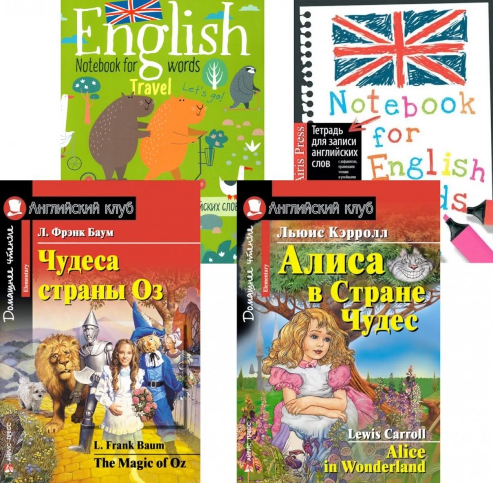 Чудеса страны Оз. Алиса в Стране Чудес. + Тетради для записи английских слов (комплект из 2-х книг + 2 тетради). Книги на англ.языке