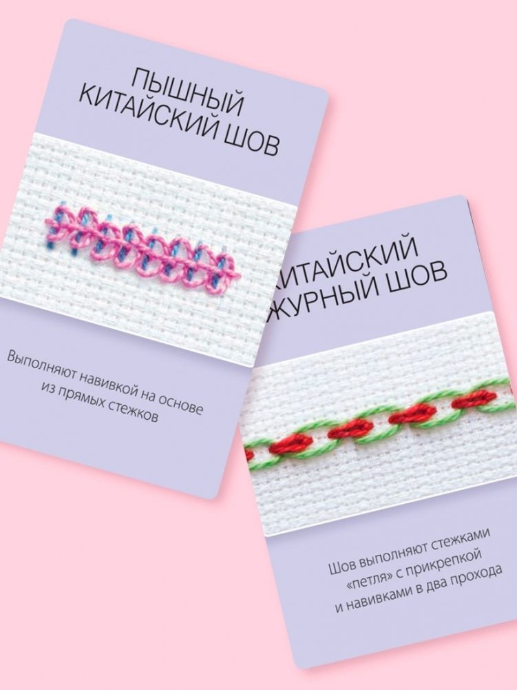 Освойте искусство декоративной вышивки с набором из 50 уникальных карт! Каждая карта демонстрирует один шов или стежок, сопровождаемый пошаговыми инструкциями и иллюстрациями, которые делают процесс вышивания простым и понятным. Этот набор станет настольным для тех, кто хочет сделать свои проекты изысканными и уникальными или попробовать что-то новое в вышивке. Вы научитесь вышивать красивые картины и орнаменты, декор для одежды, аксессуаров и текстиля. Карты удобно использовать как дома, так и в дороге — все необходимые техники всегда под рукой. Благодаря понятным пояснениям и советам, они пригодятся как новичкам, так и опытным мастерам. Отличный подарок творческому человеку! Раскройте свой творческий потенциал и вышивайте настоящие шедевры, вдохновляясь этой коллекцией!