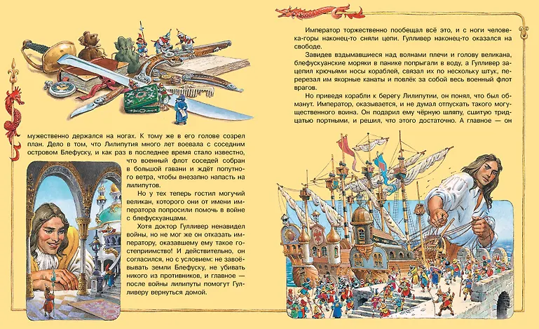 В книгу вошли одни из самых знаменитых сказок о путешествиях и опасных приключениях: "Гулливер в стране лилипутов", "Принц Омир и принцесса Шахразада", "Огниво", "Бременские музыканты" и другие. Cказки адаптированы для первого знакомства детей с сокровищами мировой литературы. Иллюстрации знаменитых итальянских художников перенесут читателей в мир чудес и волшебства.