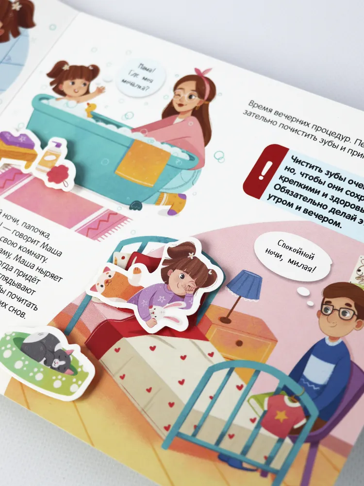 Серия «Липучки» от торговой марки Malamalama — это развивающие книги, к которым захочется возвращаться снова и снова, ведь с ними можно не только заниматься, но и играть! Вместе с книгой «Режим дня» ребёнок познакомится с тем, как проходит день в детском саду и чем занимаются разные члены семьи утром, днём и вечером. А ещё на каждом развороте ребёнка ждут весёлые игры и развивающие задания.