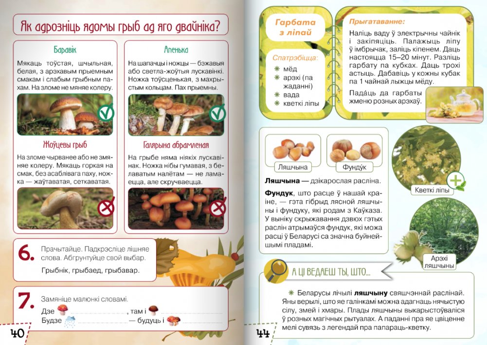 Простыя, даступныя для ўспрымання схемы і кароткія, ёмістыя тэксты з рубрыкі “А ці ведаеш ты, што…”, з аднаго боку, пашыраюць і дэталізуюць школьныя веды дзіцяці па дадзенай тэматыцы, з другога боку, накіраваны на абуджэнне яго пазнавальнай цікавасці, вызначэнне патрэбы з апорай на атрыманыя з тэкстаў звесткі задаваць дадатковыя пытанні, усталёўваць адпаведныя прычынна-выніковыя сувязі.