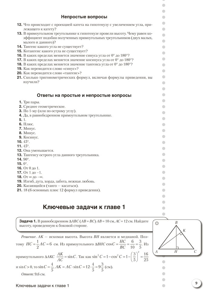 Пособие позволяет быстро обобщить, систематизировать учебный материал и при желании изучить его с опережением программы. Каждая глава содержит опорный конспект, вопросы и ответы на них, а также ключевые задачи с решениями. В конце пособия приведены ответы. В конце главы представлены контрольные работы в двух вариантах.