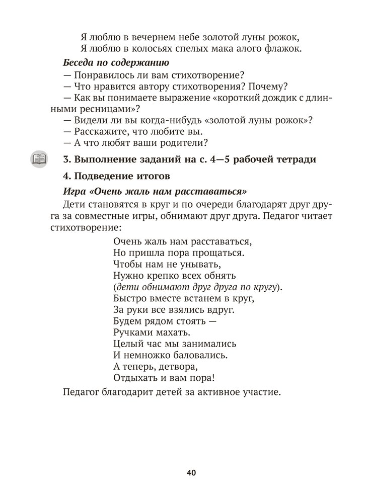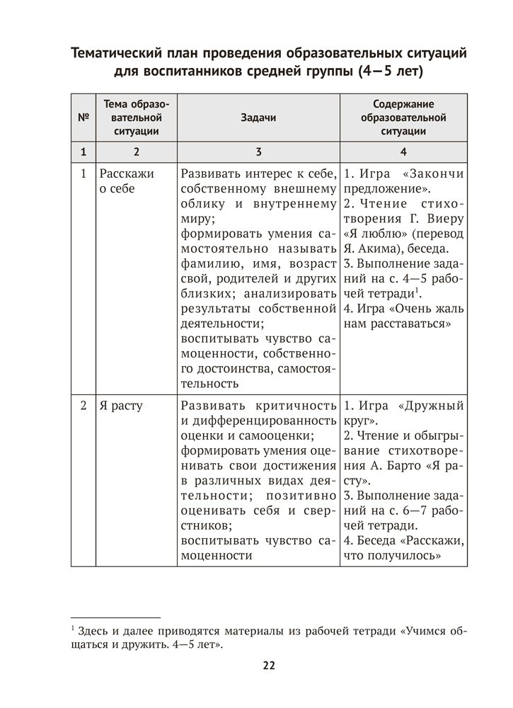 Пособие включает конспекты образовательных ситуаций, направленных на социально-нравственное и личностное развитие воспитанников средней (от 4 до 5 лет) и старшей (от 5 до 7 лет) групп. Содержание издания способствует реализации задач образовательной области «Ребенок и общество» (компоненты «Самопознание», «Взаимодействие со сверстниками и взрослыми», «Познание социума») учебной программы дошкольного образования.