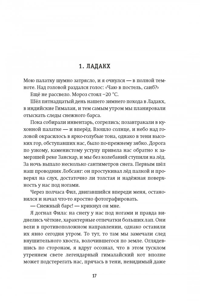 Жажда приключений и новых открытий привела австралийского врача Билла Крозье к многолетним странствиям по Гималаям. Однажды увидев на снегу следы снежного барса, Билл задался целью увидеть это животное в дикой природе, именно поэтому он отправился в Долпо, одно из мест обитания неуловимого хищника. Несколько лет подряд возвращаясь в Гималаи, вместе с поисками барса, путешественник посещал буддийские монастыри, маленькие деревни, преодолел несколько горных перевалов и стал свидетелем разрушительного землетрясения.