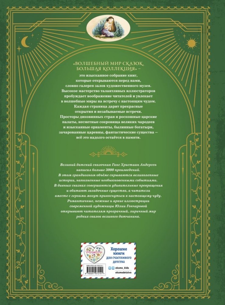 В книгу вошло 16 необычных, удивительных сказок великого датского писателя Ганса Христиана Андерсена. "Дочь болотного царя", "Суп из колбасной палочки", "Ганс Чурбан", "Свинья-копилка", "Всему своё место" и другие чудесные истории публикуются в классическом переводе Петра и Анны Ганзен. Иллюстрации Юлии Гончаровой.
