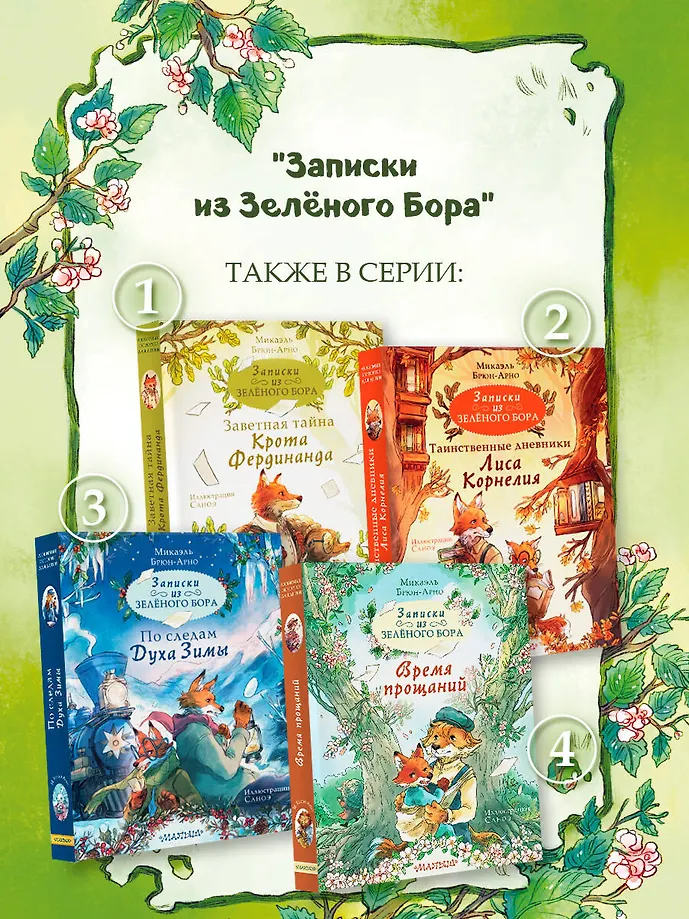 Все в Зелёном Бору знают, что каждый написавший книгу зверь может оставить её в Книжном магазине Лисов. В этом году их семейство готовится отпраздновать восьмидесятилетие магазина. Но в самый разгар юбилея внезапно ломается огромная ветка дуба, в котором он располагался. Это первый признак страшной болезни – гриба древожора. Избавиться от него невозможно, и есть только одно решение – срубить всё дерево. Лисёнок Эрнест, сын Бартоломео, не готов смириться с этим диагнозом. Ведь старый дуб хранит не только работы, но и воспоминания о его матери Аннете. Теперь только дерево желаний – волшебная яблоня, легенду о которой рассказала ему когда-то давно мама, – может сотворить чудо. Но где именно искать его в лесу? Юному путешественнику и его спутникам предстоит пройти непростой путь: преодолеть горе своих потерь и страхов, найти утешение в самих себе и смело открыть новую главу своей жизни. Ведь иногда прощания тоже необходимы! Настоящая ода любви и принятию!